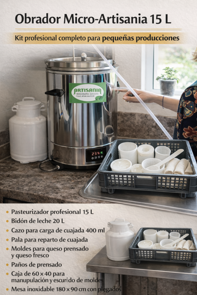 Incluye el equipamiento necesario para comenzar a elaborar queso en pequeño formato con maquinaria profesional.